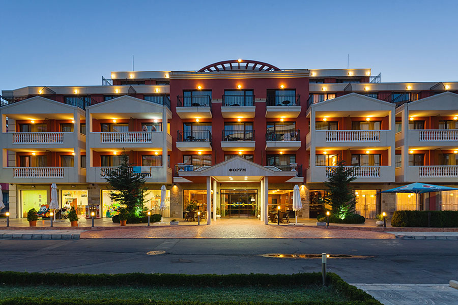 Форум е раположен в южната част на Слънчев бряг се намира в Слънчев бряг, 350 метра от плажната ивица.