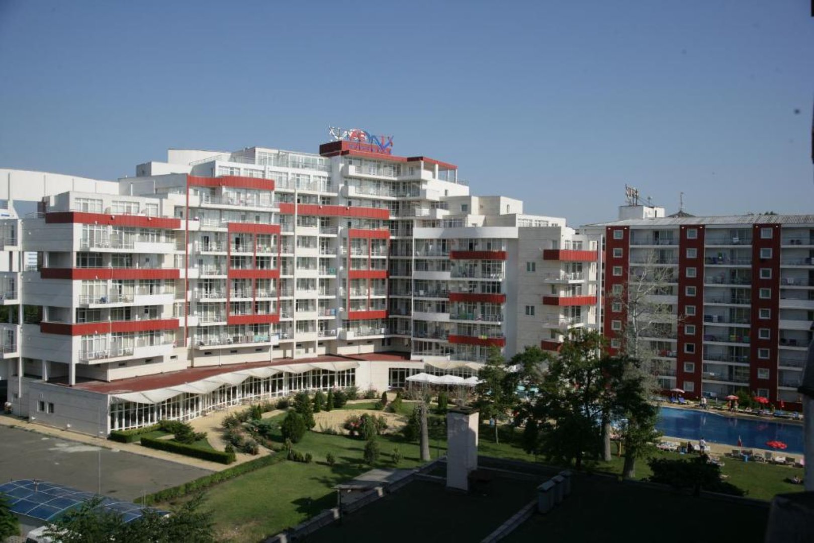 В хотела: рецепция, 5 асансьора ,ресторант, лоби - бар,окрит плувен басейн с тераса,чадъри и шезлонги на басейна, медицински център, фитнес център и масаж, детска площадка , паркинг, WiFi, Развлекателна програма за деца и възрастни 6 дни в седмицата