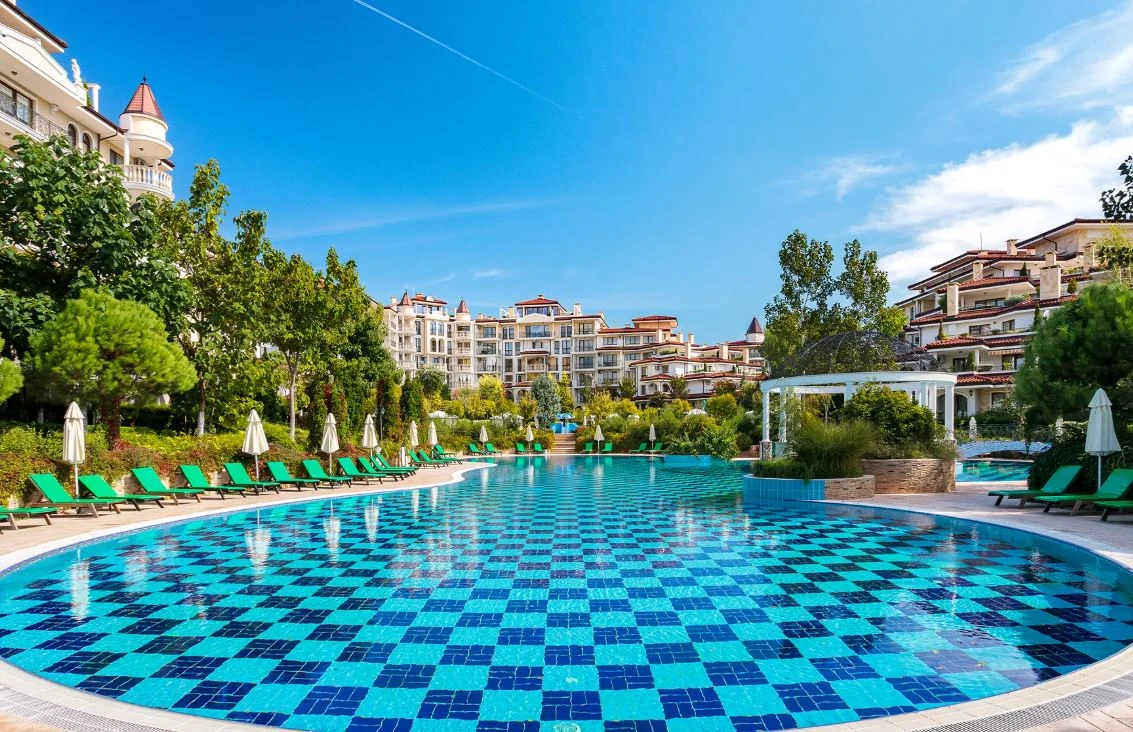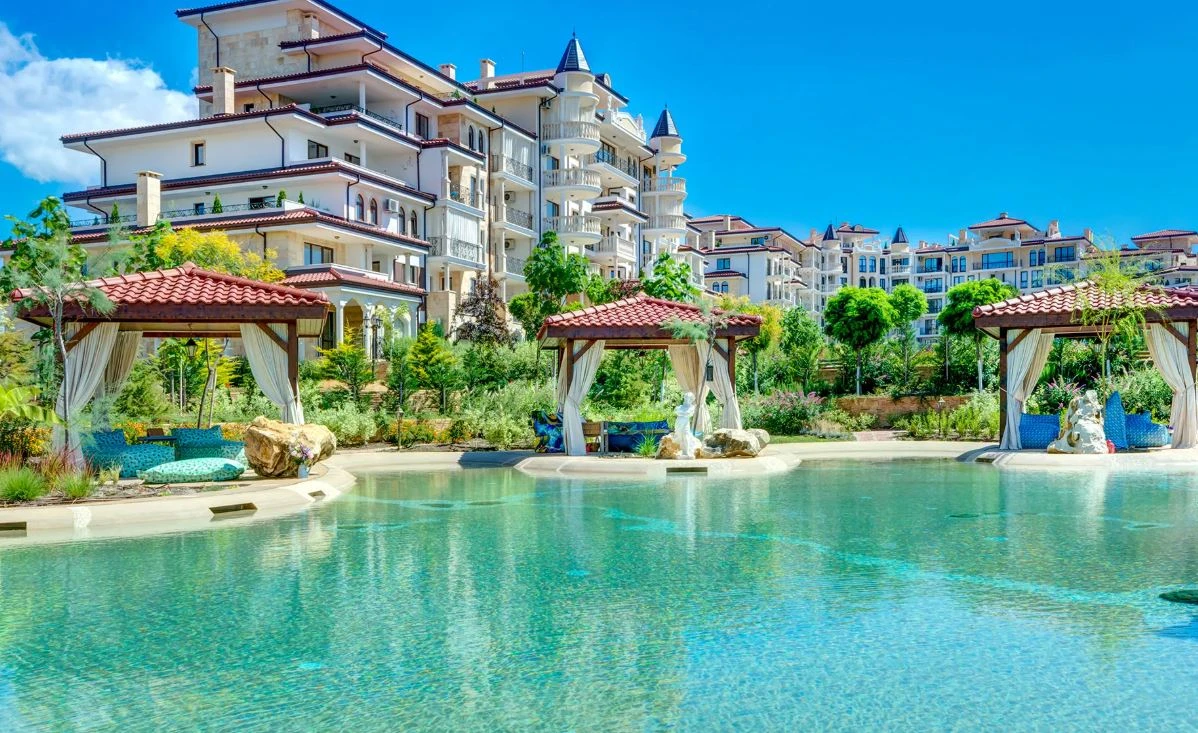 В комплекса: спа център, фризьорски салон, детски клуб, басейни, релакс зона, тенис корт, мини голф, детска площадка, ресторант, барбекю зона, паркинг, охрана 24/7