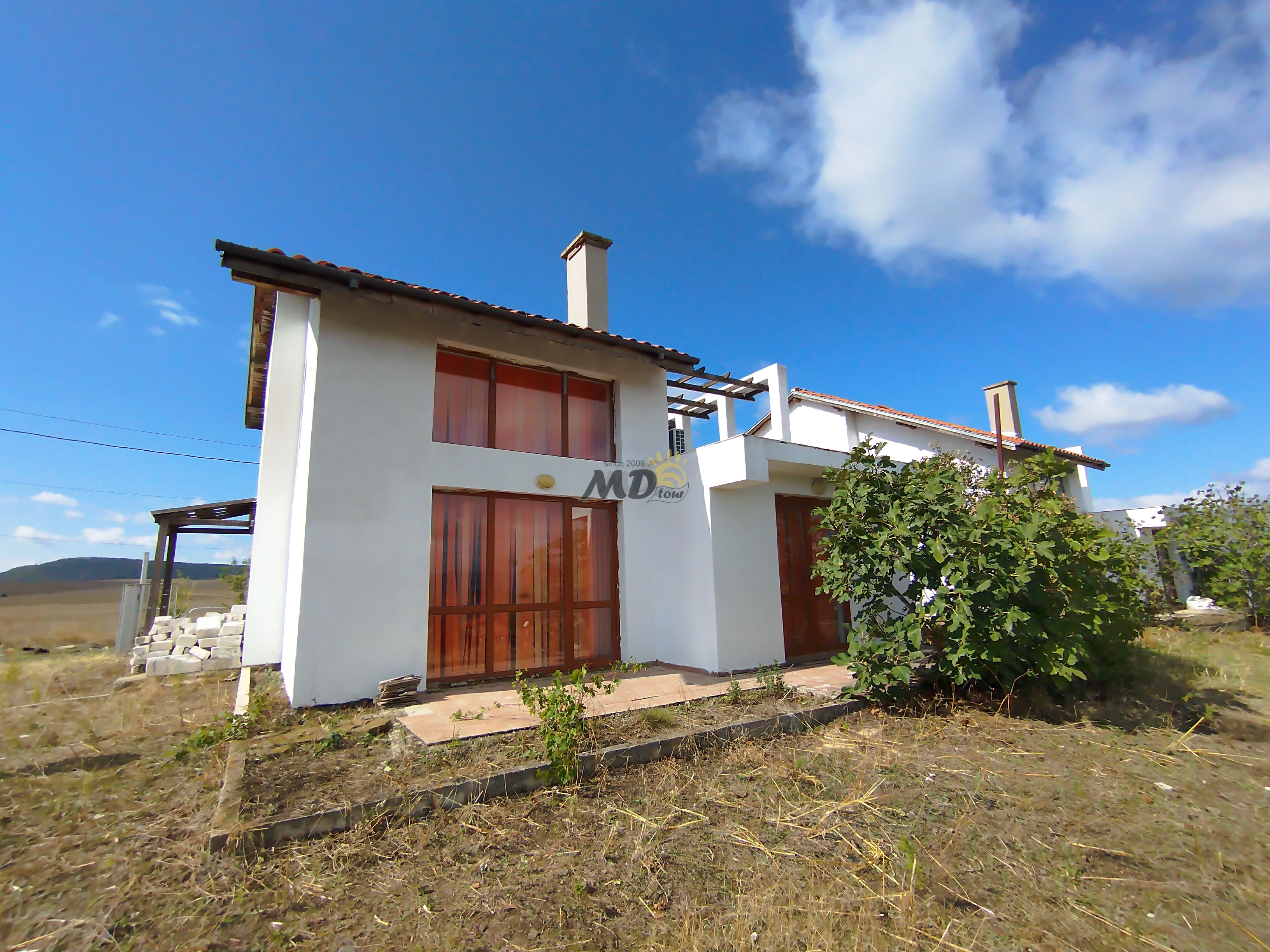 Нова самостоятелна къща на 2 етажа с гараж. Намира се в село Александрово което е само на 12км от Слънчев бряг и плажа. Отличен имот за целогодишно или сезонно ползване. Къщата е въведена в експлоатация и има самостоятелни партиди за ток и вода. Продава се с обзавеждането което се вижда.