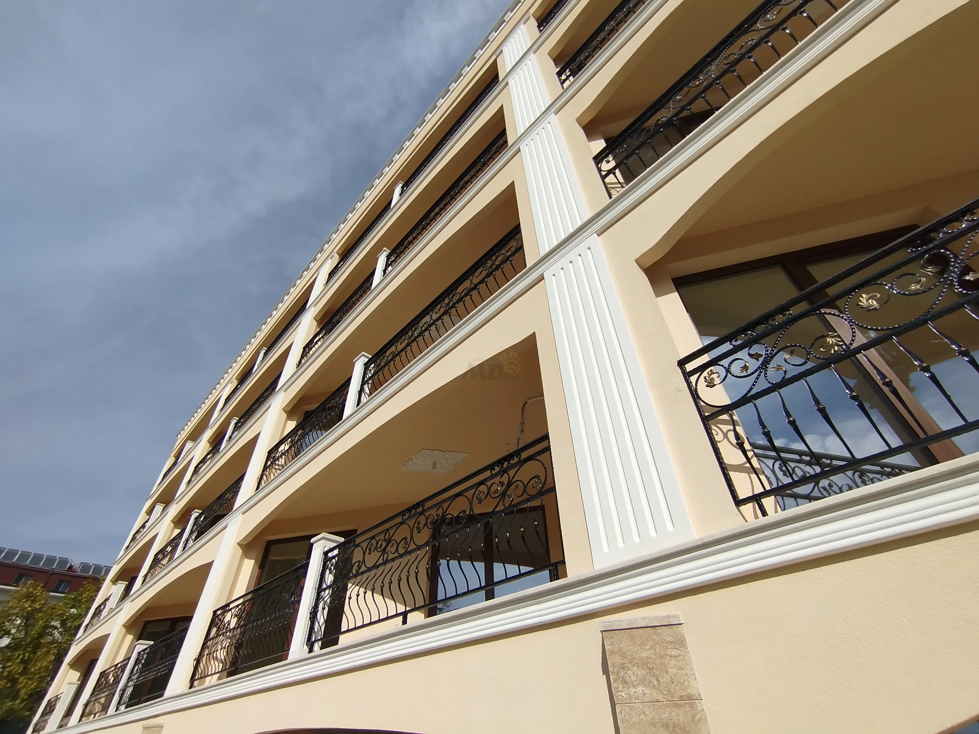 Елегантен, луксозен и модерен комплекс, издържан в съвременен архитектурен стил, разположен на първа линия море, в новата част на гр. Несебър, в непосредствена близост до историческата зона на града. Комплексът е от затворен тип, впечатлява със своята изтънченост и красива фронтална гледка към морския залив от всички апартаменти. Местоположението е много добро – в комуникативен район, с добре организирана инфраструктура, в близост до парковата зона на града. Комплексът предлага за продажба двустайни и тристайни апартаменти с функционални разпределения, завършени до ключ, което включва подово покритие, боядисани стени и тавани, оборудвани бани,климатик. Сградата е с луксозни общи части, модерен асансьор и контролиран достъп.Подходяща за целогодишно ползване.